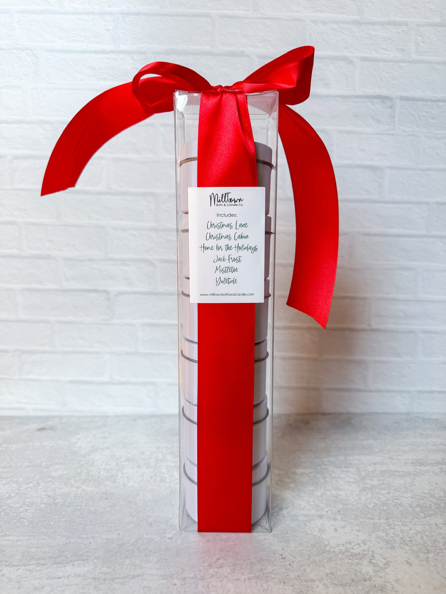 Celebrate the season with A Very Merry Candle Set — a curated collection of all six of our MillTown Christmas scents, hand-poured into 4 oz. tins and beautifully packaged for gifting (or keeping all to yourself).